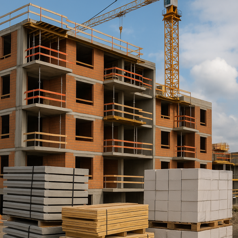 Darüber hinaus beschaffen und handeln wir mit ausgewählten Baustoffen, um Bauprojekte effizient, wirtschaftlich und qualitativ hochwertig umzusetzen.